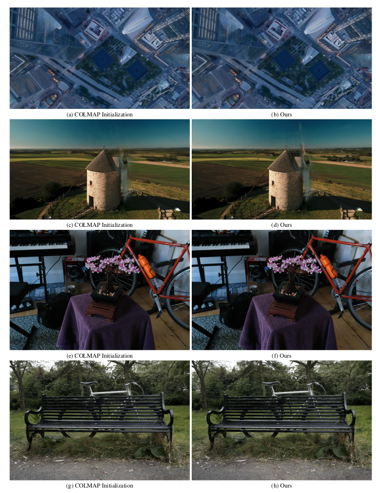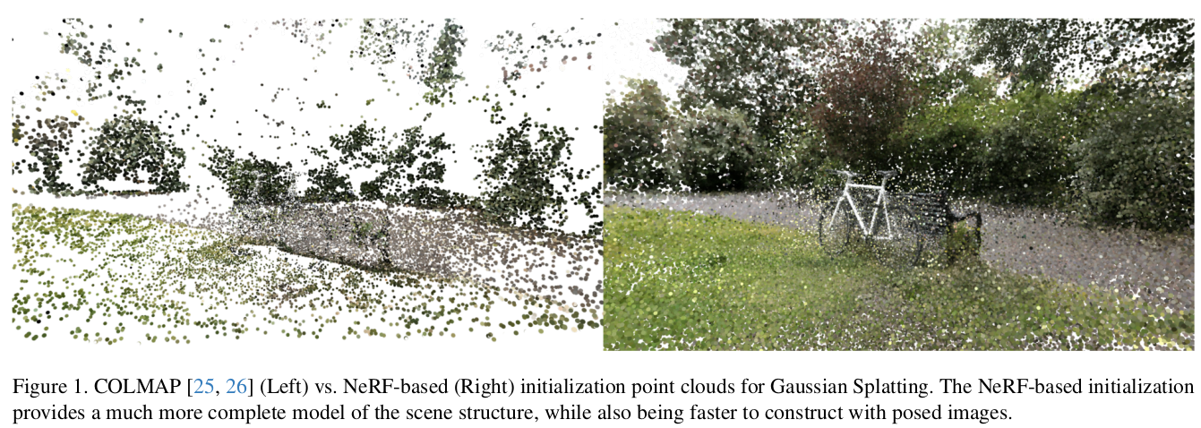 COLMAP을 쓰는게 정말 효과적일까? 그냥 random initialization은 의미가 없나? NeRF를 써서 초기화하는건 훨씬 더 좋은가?를 궁금해하고 그것을 실험을 증명해본 논문이다.