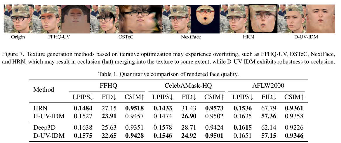 ![]() 위에서 만든 데이터로 VAE를 학습. 기존 VAE는 도메인이 in-the-wild 이미지기 때문에 face uv map 용 VAE는 새로 학습하는게 맞다. 데이터 찍어낸 것으로 사전 학습 해두는 식. LOSS는 기존 방식과 동일. LDM 학습시에는 임의의 face texture를 생성할 수도 있지만 목적이 "주어진 이미지 사람의 완성도있게 채워진 texturemap"이기 때문에 주어진 이미지 사람의 미완성 texture map을 condition으로 넣어준다. 이 때는 데이터셋 생성시 사용했던 동일한 방식으로 Deep3D + vertex color 찾고 + uv unwrap 방식 그대로 따라 만들고 마지막에 embedding으로 위한 encoder만 추가해주는 방식. |