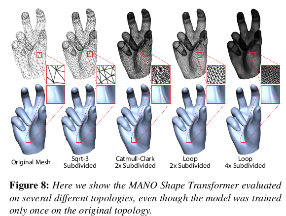 topology에 상관없이 shape 정보를 들고 있는 모델이기 때문에 mesh가 어떤 것이든 상관없음 얼굴, 손, 바디 전부 다 가능. |