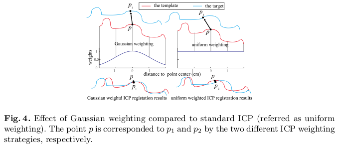 thresholding 통해서 low score, smooth region은 일반적인 ICP로 돌도록 그대로 냅두고 high score, high region은 gaussian kernel을 씌운 뒤 ICP를 돌도록 한다. high score region만 kernel을 씌우는 이유는, 해당 vertex만 보정하도록 집중하게 만들기 위해서다. 안그러면 smooth하게 달라붙는데, 이 영역은 그보다 detail하게만 달라붙어주는게 도움이 된다. |
