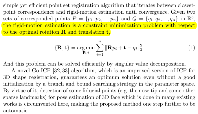 시작은 역시나 ICP다. 얼굴만 대상으로 하기 때문에 얼굴 끼리는 대충 icp 돌려도 대략의 R, t 정도는 나오기 때문에 초기화 정도로 그냥 ICP를 돌려준다. |