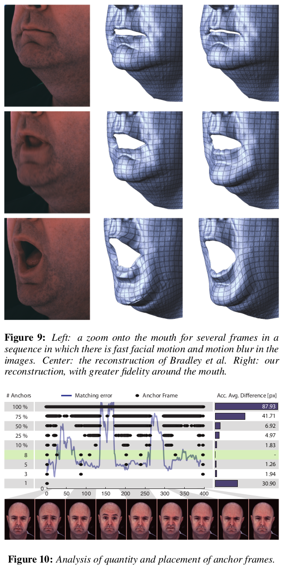 High-Quality Single-Shot Capture of Facial Geometry 2010년 논문을 그대로 multiview video 입력으로 어떻게 확장할 수 있는지 고민해서 나온 2011년 디즈니 논문. 핵심 방법론은 2010년 논문이랑 똑같은데, 여기서 다루는 contribution은 각 reconstruction마다 tracking을 해서 하나의 topology로 엮는 것이다.