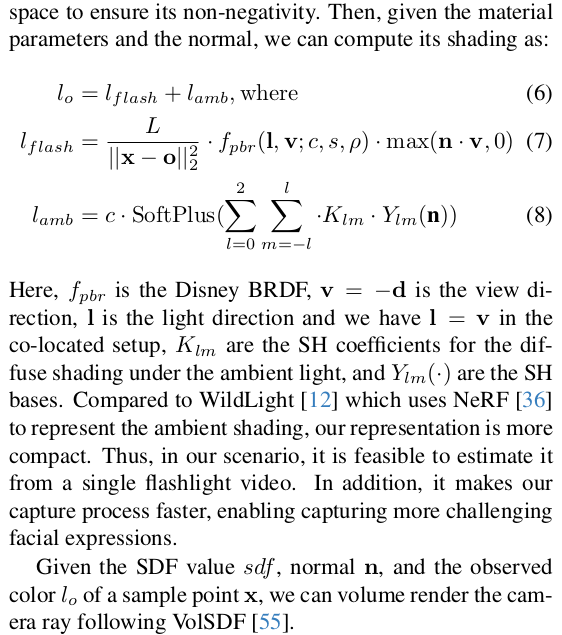 SDF + BRDF NeRF. 디테일이 추가된 차이가 있지 큰 그림에서는 기존 NeRF를 활용한 논문. 하지만 데이터 취득을 플래쉬를 켠 휴대폰으로 독특하게 설정한 점이 돋보인다. 조명을 다루는 것은 세팅이 워낙 필요해서 일반 사용자가 하는 것은 거의 무리라고 여겨졌는데, 핸드폰 조명을 이용했다는 점이 인정받은 것 같다. 내가 생각해도 좋은 시도인 것 같다.