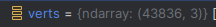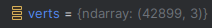 Meshlab에서 42899개 vertex를 갖고 있는 mesh가 있는데 이를 open3d에서 읽으면 다음과 같이 읽힌다.