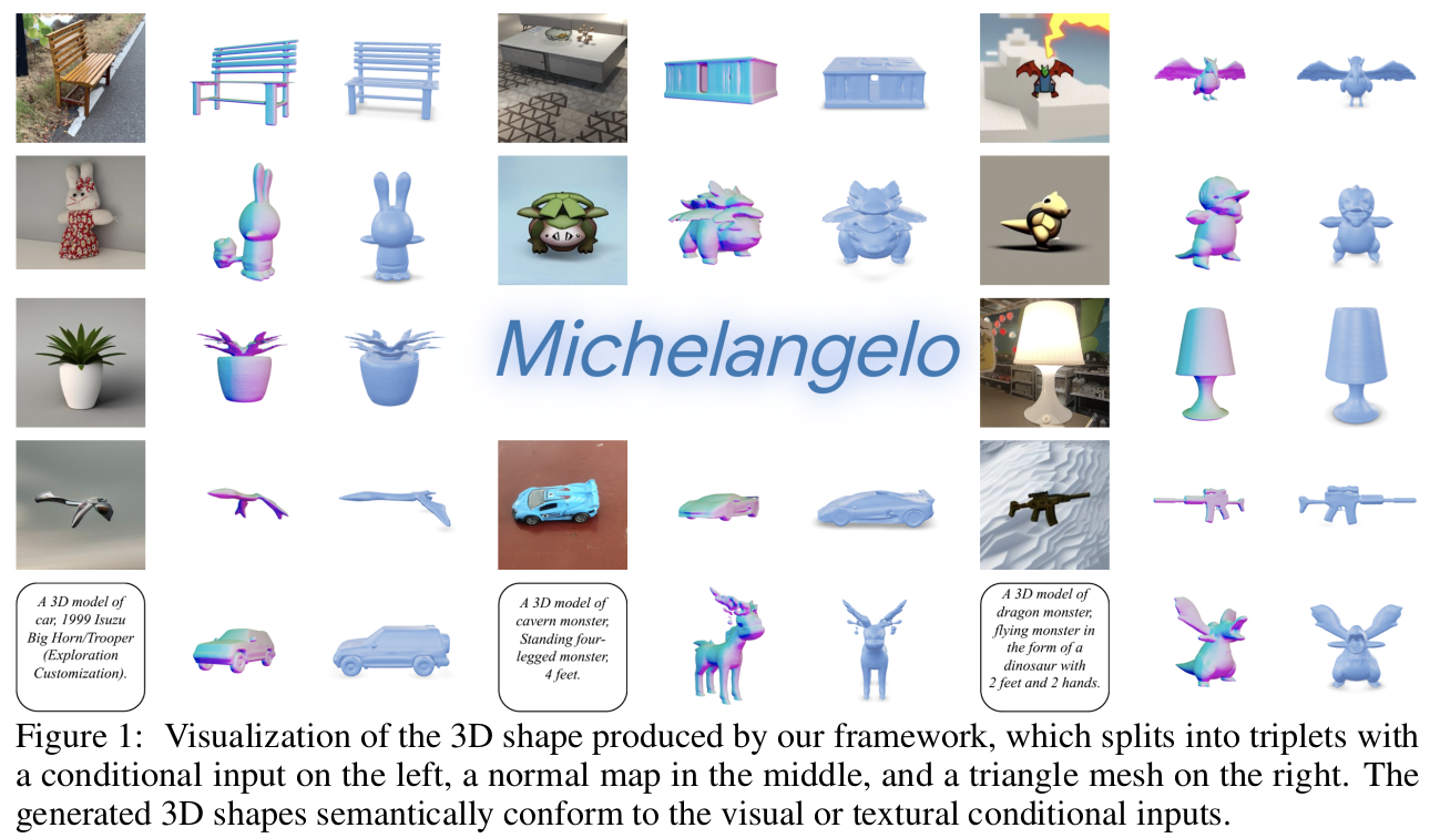 위와 같이 VAE를 학습시켜 3D shape latent space를 만들어두었지만, 입력이 3d point가 있어야만 하는 상황... mesh를 생성해내고 싶은데 point cloud가 있을리 만무하니 chicken and egg problem이 되어버렸다. ----------- 정답은 diffusion으로 3D shape latent 를 만들어내는 것이다. 3D point cloud 입력에서 만드는 것이 아니라 diffusion으로 무한히 생성해내는 식으로 문제를 풀었다. 이 과정에서 image/text condition을 받도록만 해주면 image to mesh, text to mesh가 바로 가능. |