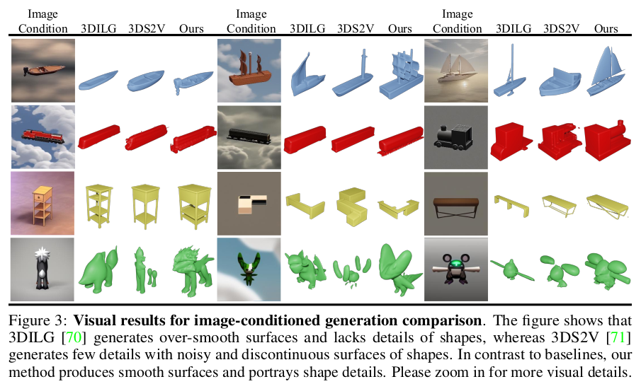 image/text보다 mesh에 더 가까운 차원인 3D shape latent로부터 diffusion해서 mesh를 만들기 때문에 divide-and-conquer 전략 느낌으로 각개격파라서 성능이 좋다.