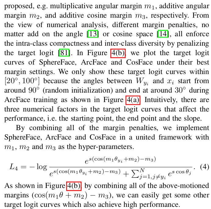 ![]() 비슷한 컨셉이 없진 않았따. 각도를 다루는 식의 논문이 여러개가 있고, 각각 margin이 어디에 들어가느냐 차이인데 m1, m3가 기존 논문이다. 하지만 m2 위치에 더하는 것이 효과가 뚜렷함. 3가지 margin을 조화롭게 조절하면 됨. |