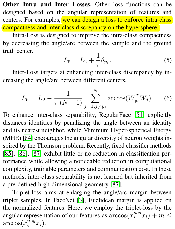 추가적으로 같은 class끼리를 각도가 가깝게, 다른 class끼리는 멀게 보강할수도 있다. (뒤에 후술하는데 큰 효과는 없다고 함) |