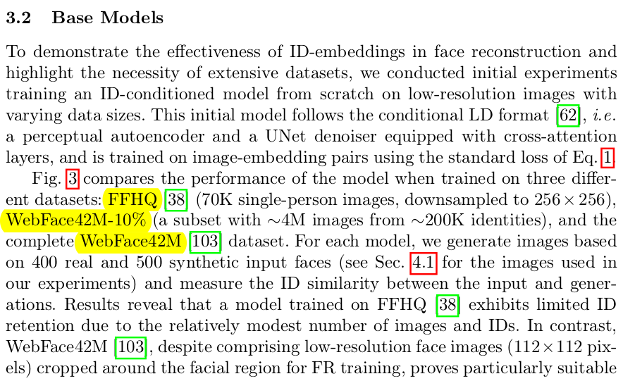 diffusion model을 학습시킬만큼의 높은 자유도 ID embedding이 확보되어야 하므로 Webface42M + FFHQ + CelebHQ를 섞어서 arcface부터 large scale로 다시 학습시키고, 그것을 다시 diffusion model 학습에 활용했다.