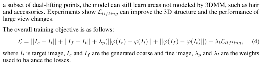 lifting으로 만들어지는 gs의 위치만 3DMM nearest vertex에 맺히도록 걸어주고 나머지는 다 rendering loss + perceptual loss다. |
