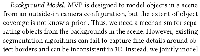 배경은 딱히 고려 안해도 될 것 같았지만, 따로 모델을 만들어두었다고 함. 사람이 있는 상태에서 찍은 이미지 말고 사람 없이 찍은 배경 이미지를 이미 들고 있다는 가정 하에 기본 배경 + 사람과 배경의 interaction으로 생기는 차이 (occlusion, 그림자 등) 후자만 학습함. ------ 정해진 각도의 기본 배경 이미지에 더하는 방식이기 때문에 임의의 각도에서 배경 렌더링은 안됨 -> 이걸하는 이유는 대상 복원할 때 배경으로 인한 변화를 담당하는 모델을 따로 두어서 대상 복원 성능을 높이려고 한 것 같음. |