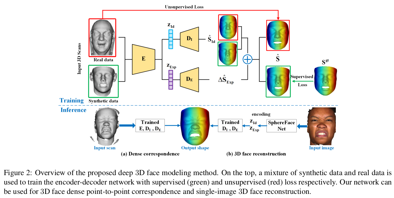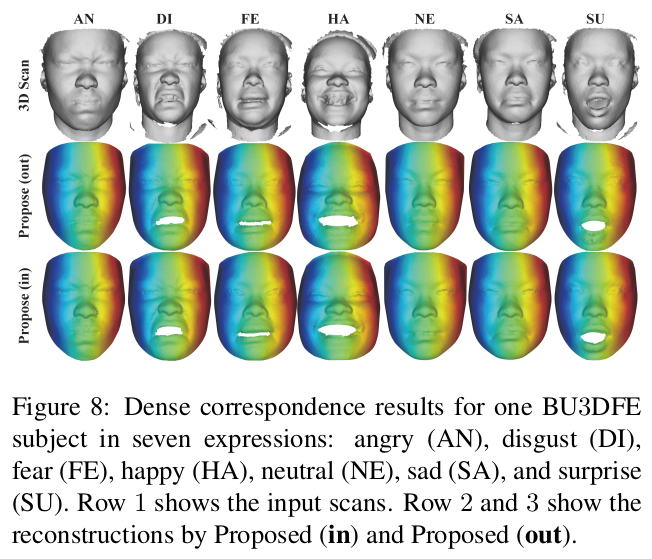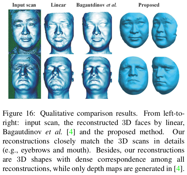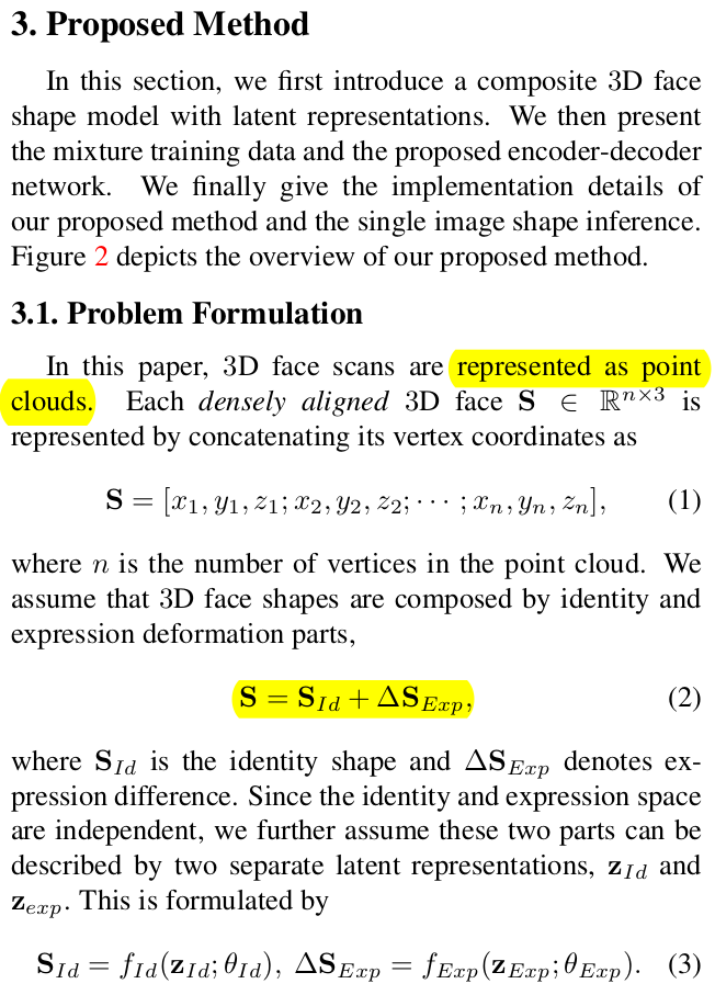이 논문은 3D SCAN을 입력으로 넣으면, 단일 topology mesh로 나오도록 하는 모델이다. 사실 상 pointcloud to mesh에 가까운 논문. 컨셉은 그렇다만 방식은 point grouping은 아니고 scan to latent to mesh 방식이다. scan을 latent로 압축하고 정해진 topology의 mesh를 내뱉는 decoder를 붙인 형태다. 그래서 설명하길 nonlinear face model이라고 설명한다.
