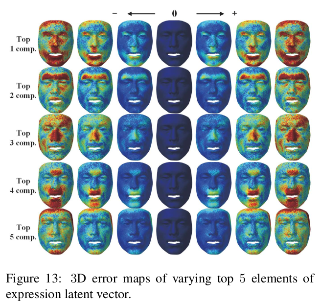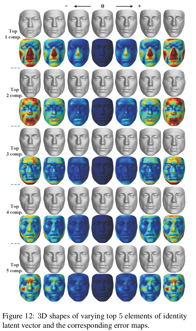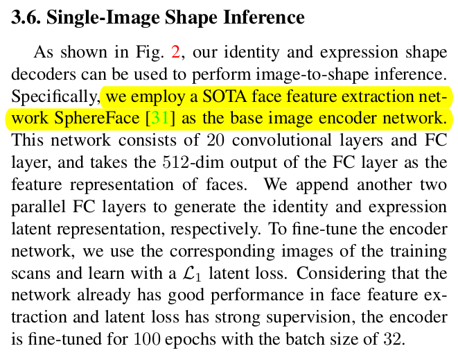 만약 shape, expression latent를 뽑아주는 image encoder가 있을 경우 image to mesh도 가능한 시나리오. sphereface (일종의 arcface 이전 작) 을 이용해 image to latent로 바꾸고 붙여서 데모를 했다. |