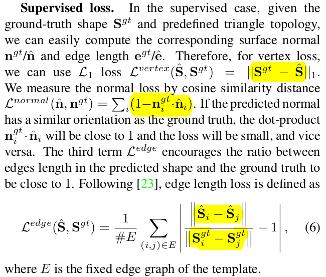 loss 구성은 복원 전 후 vertex 위치 변화 -> topology가 같으면 1대1 -> topology가 다르면 cloest point와 1대1 복원 전후의 normal 변화 -> topology가 같으면 1대1 -> topology가 다르면 cloest point와 1대1 복원전 후의 edge 길이 변화 -> topology가 같으면 edge 별로 -> topology가 다르면 template model의 edge 길이와 |