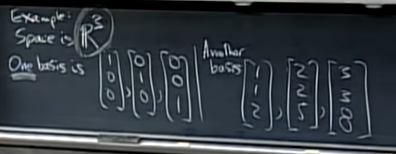 - 예를 들면, 3차원에서 [1,0,0], [0, 1, 0], [0, 0, 1]은 basis다. 이것만 존재하는 것은 아니고 [1, 1, 2] [2, 2, 5], [3, 3, 8]과 같이 다른 형태를 띌 수도 있다.