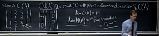 - 즉, n - rank(A) == # of free columns of A == dimension of N(A)