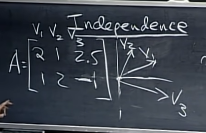 - 2차원에서 예를 들면, 위 사진에서 v1과 v2만 있었다면 이 둘을 합쳐 0을 만들 방법은 둘 다 0배를 곱하는 방법 외에는 없다. 따라서 v1과 v2는 independent하다.