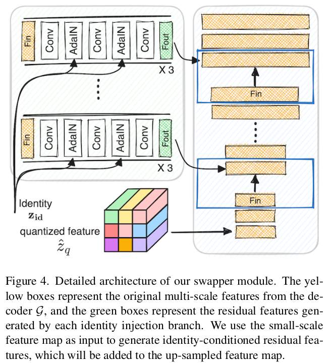 ![]() loss는 앞선 수식과 거의 동일한데, encoder-decoder가 freeze되어있기 때문에 swapper만 업데이트되면서 주어진 입력 이미지 정보를 decoder에 adaptation시키는 부분만 학습됨. |