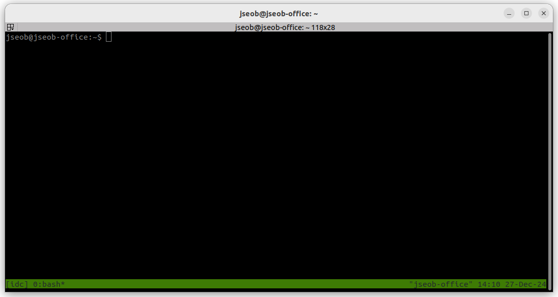 tmux 세션 진입한 뒤에는 아래 초록색 띠가 생긴다. 이 띠를 보고 내가 원격 PC 터미널을 보고 있구나 라고 인식해야 혹시 모를 사고를 막을 수 있다.