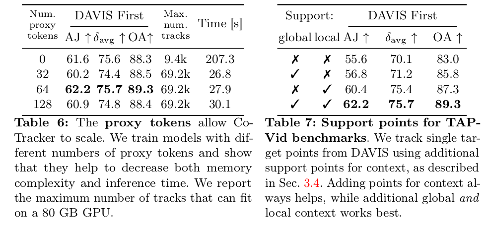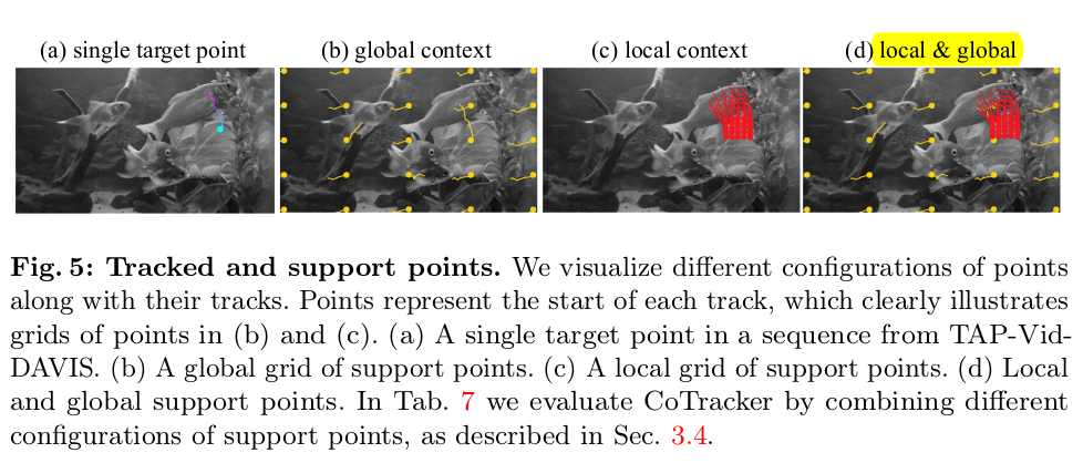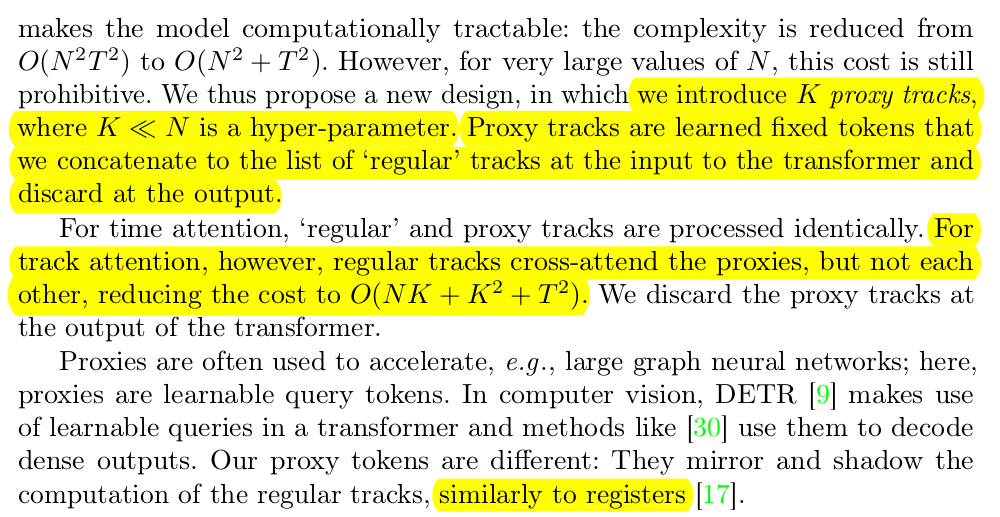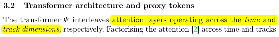 최종적으로 1. 첫프레임과 T프레임 간 point residual 2. confidence 3. track feature 4. spatial correlation feature 5. pos_emb(1.) 6. 첫프레임 point 7. 현 프레임 id t 이렇게 7개를 concat한게 token이 돼서 trasnformer 입력으로 들어감 -- 출력은 첫프레임 -> T프레임으로 변화하는 residual들. ---- 독특하게 confidence는 residual 더하는 식으로업데이트되게 하지 않았고 그냥 마지막에 한번 딱 예측하도록 했다 -> 이게 cotracker3에서는 다시 업데이트되도록 해놔가지고 그냥 큰 의미는 없는 듯. |