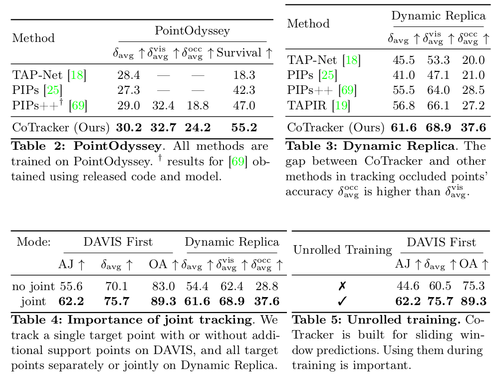 query point feature를 처음 첫 프레임에서 뽑아서 learnable로 계속 열어두고, 각 프레임마다 query point feature + 현재 예측 상태의 point feature를 transformer로 decoding해서 계속 track point를 업데이트하는 방식. 어찌 보면 심플하지만 완성도가 높다.