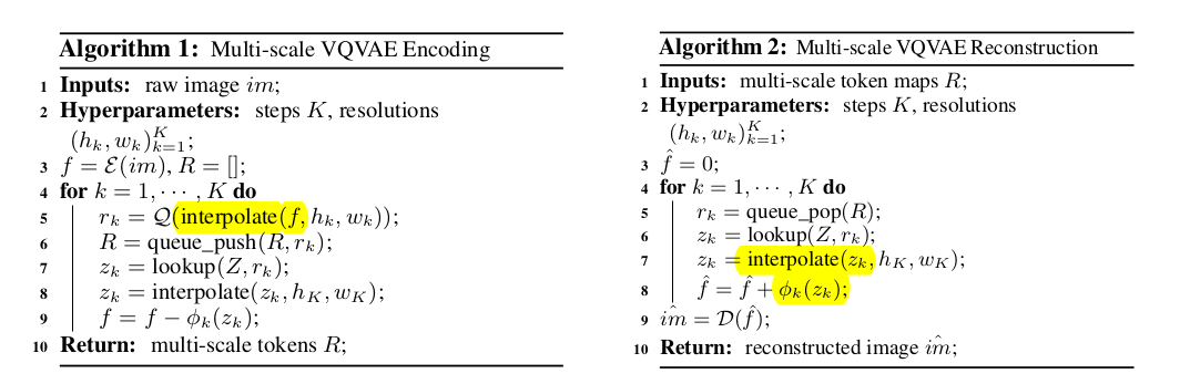 각 해상도의 픽셀은 voca 내 nearest feature로 채워진다. 모든 해상도에게 voca는 공유된다. |