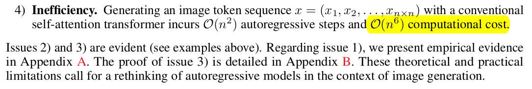 근데 이렇게 하면 문제가 3가지가 두드러진다. 1) 이전 정보로 미래 정보를 예측한다는 컨셉인데 image token을 만드는 과정에서 Conv가 끼기 때문에 어쩔수 없이 전후좌우 (이미지 입장에선 미래 정보)가 섞일 수 밖에 없다. -> 컨셉에 안맞는다. bidirectional input에서 시작할 수 밖에 없음 2) 이전 정보로 미래정보를 예측한다는 컨셉을 지키도록 한다 해도 본질적으로 이렇게 이미지를 가로로 펼치는 방식으로 하면 이미지 하단이 미래, 이미지 상단이 이전이 되므로 상단->하단으로 가는 생성밖에 못한다. -> 이미지 상단을 inpainting한다고 하면 불가능함 -> 구조적으로 문제 3) 2D를 1D로 만들면서 attention 량이 엄청 늘어나 버림. 메모리/연산량 소모가 너무 크다. |