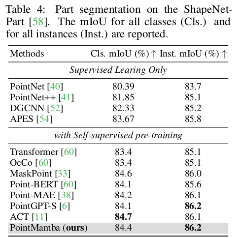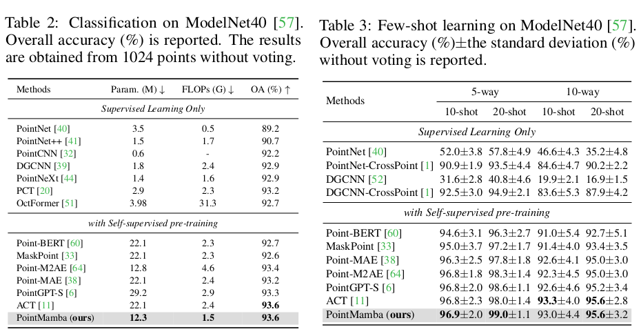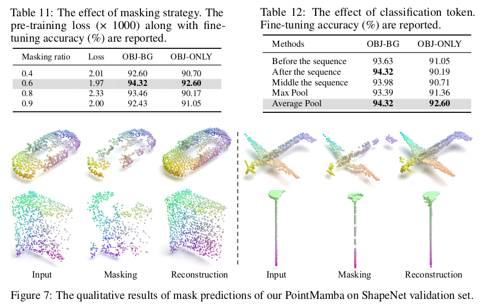 효과는 예상 가능하게도, 폭발적인 메모리, 연산량 절약이다. 덤으로 MAE trick도 사용 가능한지 실험을 해둬서 point MAE의 대체재로 사용되길 기대한 것 같다.