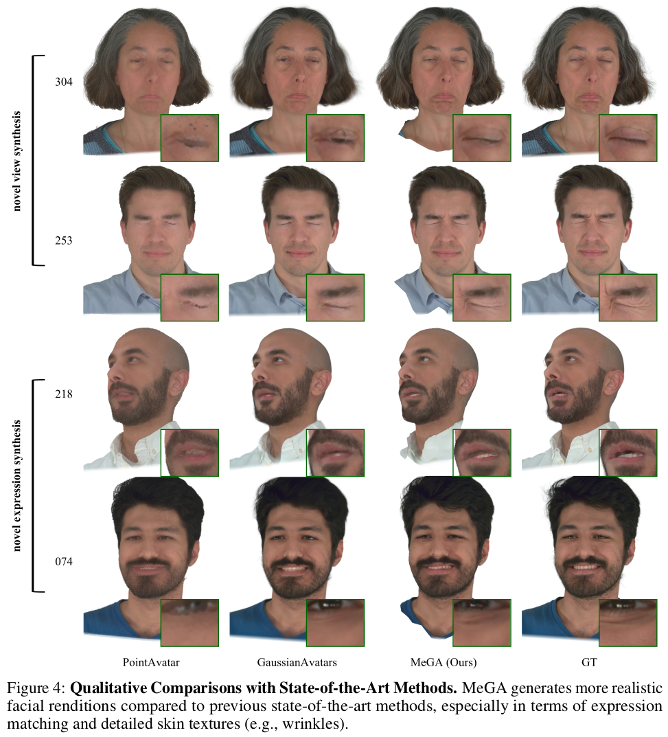 주어진 multiview-video + fitted FLAME 들로부터 animatable avatar를 만드는 것은 기존 많은 논문들과 동일한데, 머리카락 부분과 나머지 부분을 분리해서 학습시켜서 머리 바꿔치기가 가능하다는 점과, FLAME을 그대로 안쓰고 UV displacement을 중간 끼워넣어서 geometry가 더정확해지도록 만든 다음 처리했다는 점이 눈에 띈다. 결과가 재밌고 자연스러워서 인정 받은 느낌도 있다.