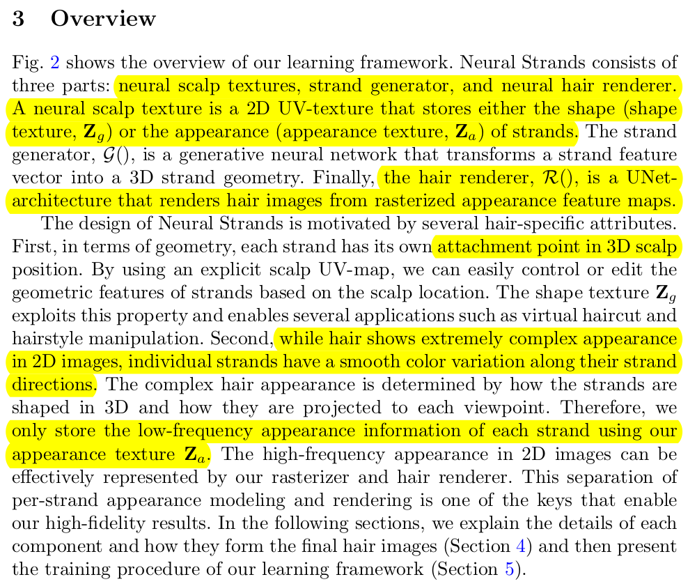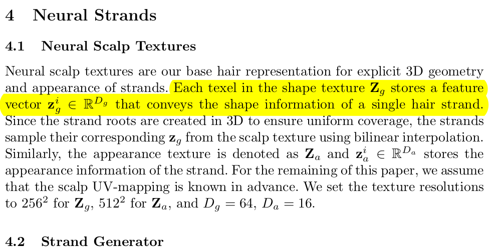 각설하고 논문 내용을 보면, FLAME의 두피 특정 위치마다 1가닥의 strand를 맵핑해서 머리카락을 복원해내겠다는 컨셉으로 strand를 어떻게 latent로 표현할 것인지 제안한 것부터 포함되어 있다. 이외에 1개씩 복원해서는 수만개의 머리카락을 표현하는데 한계가 있으니 UV domain에서 strand latent를 추정하고 interpolation이 쉽게 만들어서 dense hair를 복원할 수 있게 만드는 구현 내용까지 다 좋은 내용들이다.
