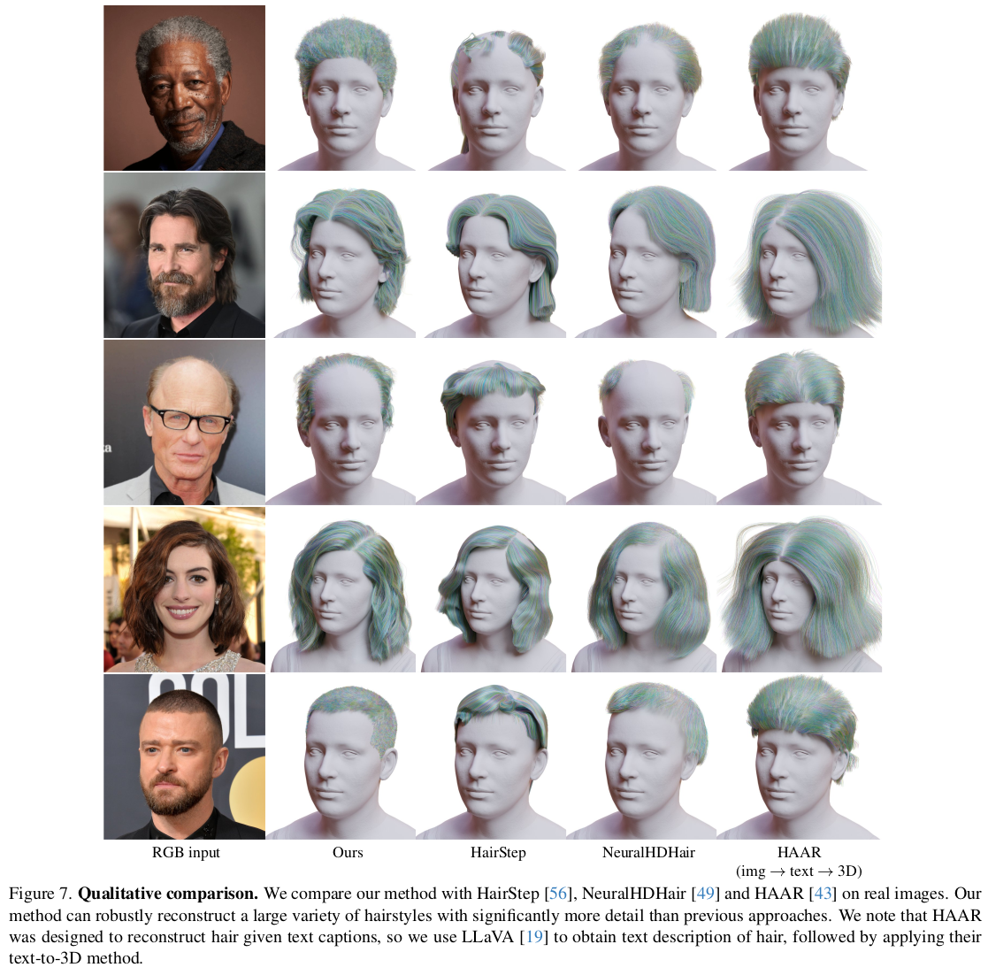 이전까지 hair stand 복원이 multiview domain이나 synthetic domain에 멈춰있었는데 이 논문이 효과적인 프레임워크들을 잘 조합해서 single view domain으로 옮겨온 것이 큰 의미가 있는 것 같다. 심지어 주체도 meshcapade라서 완성도도 의심할 여지가 없다. 데모 영상만 봐도 급이 다름.