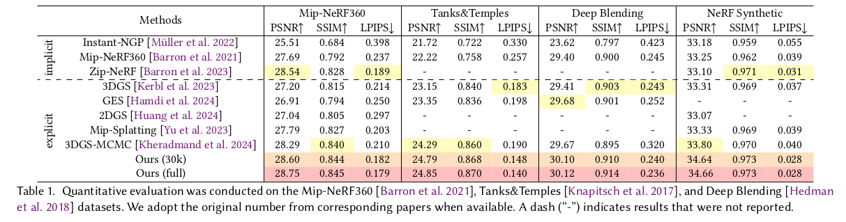 캬~ 진정한 의미의 3DGS 파생 연구가 나온 것 같다. 3DGS의 활용이 아니라 3DGS의 개선을 고민한 논문인데 단순히 3DGS가 사용한 방법론의 단점을 개선한 수준이 아니라 3DGS 의 컨셉 자체의 단점을 개선한 레벨이라 보다 깊은 논문이다. 개인적으로 굉장히 좋은 논문이라고 생각한다. 학술적으로, 수학적으로 의미가 짙은 논문이라 찐 논문인 것 같다.