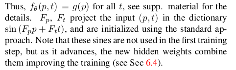 g_i가 존재하더라도 시작과 끝 2개나 discrete한 N개 일텐데 연속적인 t에 대해서 어떻게 학습을 시킬 수 있는가? 억제기 수식F가 중간 t에 대해서 잘 억제를 해주므로 그냥 N개로 학습해도 된다. |
