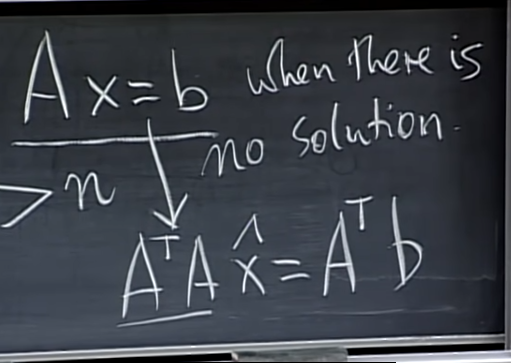 - Ax=b가 솔루션을 갖지 않을 때, 최대한 근사된 해를 계산하는 방법은 A.TA x = A.T b 와 같은 형태로 푸는 것이다.