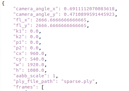 transforms.json에는 위와 같이 "ply_file_path" : "sparse.ply", 와 같은 line을 추가해줘서 nerfstudio가 초기화에 사용할 수 있도록 연결해준다.