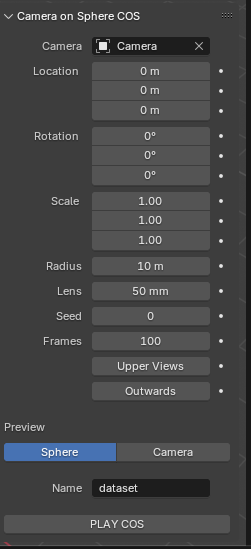 설정을 마친뒤 PLAY COS를 누르면 저장 위치에 이렇게 저장되는데 저 transforms.json을 transforms.json으로만 바꿔주면 nerfstudio에 그대로 가져다 쓸 수 있다.