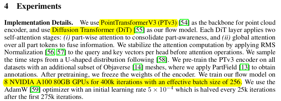 point transformer v3 + DiT A100 8 장 썼다. 역시 메모리가 1000 sampling만 써도 크구나. |