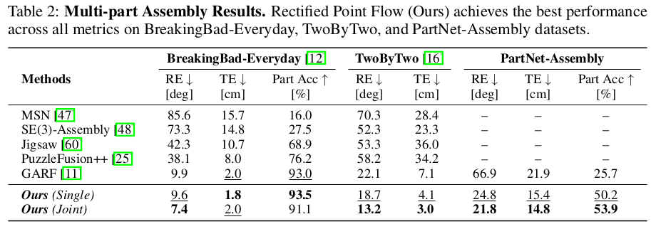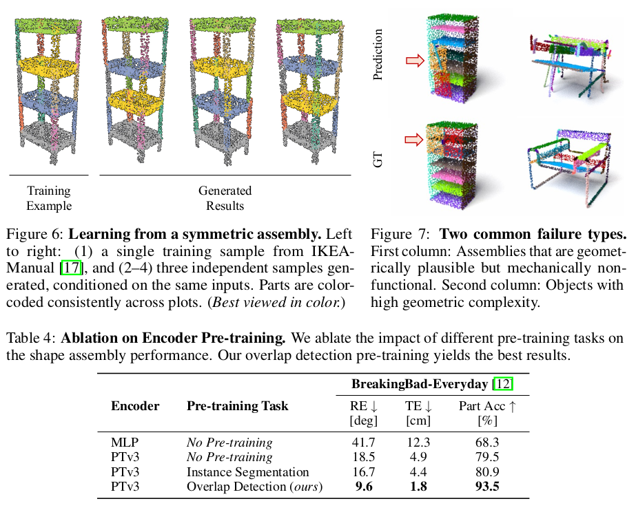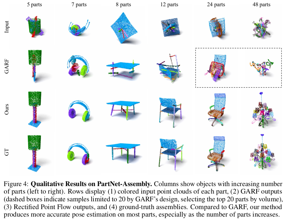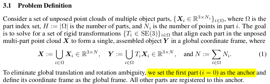 이 논문은 여러개의 object part pointcloud가 주어졌을 때, 하나를 기준으로 나머지 pcd들이 조립되듯이 정렬되는 걸 목표로 한다. 구현을 이렇게 했지만 풀고자 했던 문제를 point cloud generative model이 형상과 구조, 의미를 파악할 수 있음을 보이는데 있다. 어떻게 보면 입력을 pointcloud로 바꾼 diffusion model로 볼 수 있지만 내 생각엔 좋은 insight를 주는 컨셉 논문인 것 같다.