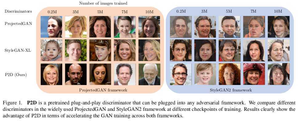 핵심 내용은 discriminator에 pretrained backbone을 추가했을 때 GAN 학습 양상이 어떻게 변화하는지 관찰하는 것이다. 결론부터 말하면 이 논문에서는 학습 속도 즉, 수렴 속도와 성능을 위주로 비교했다. 제일 궁금한 것은 그 어려운 GAN 학습 안정성 확보가 쉬워지냐 어려워지냐인데 그것에 대한 비교가 없어 아쉽다.