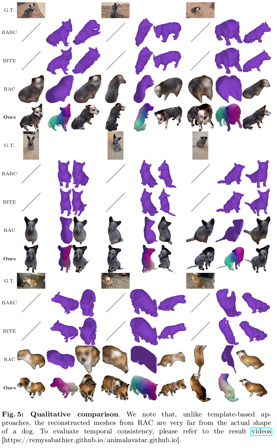 동물 논문은 예전에 SMAL 이후로 본 적이 사실 없는데, 그 이후로 그렇게 발전한 것 같진 않다. 데이터가 없을 뿐더러 관심도 낮아서 연구가 그리 많이 안된 느낌. 이해도 가는게 움직이는 개를 어떻게 찍나...그리고 개를 그렇게 많이 모으는 것도 힘들고 털이 많아서 reconstruction도 애초에 안되니 데이터를 모을 수가 없다. (어찌 보면 블루 오션인 것 같기도)