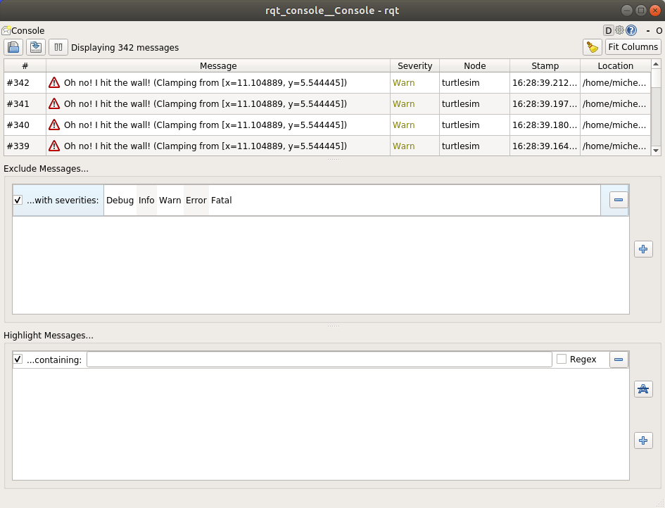 ros2 run rqt_console rqt_console
